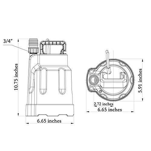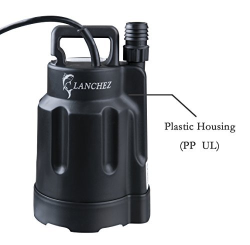Lanchez Q350109 Multi-Purpose 1/4 HP Electric Thermoplastic Submersible Utility Water Pump for Clean Water