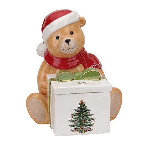 Studio : Spode Publisher : Spode Binding : Kitchen Product Description Spode Christmas Tree has graced tables all over the world since 1938 with its classic Christmas Tree motif and green band accent. Now Spode has added hand decorated accent pieces to complete your holiday table . These fun and charming items are great for holiday decorating throughout the house, or as a special holiday gift. Each piece comes beautifully gift boxed. The Teddy Bear Candy Box is 9.5" tall. There is no better holiday tradition than the gift of Spode Christmas Tree. 0