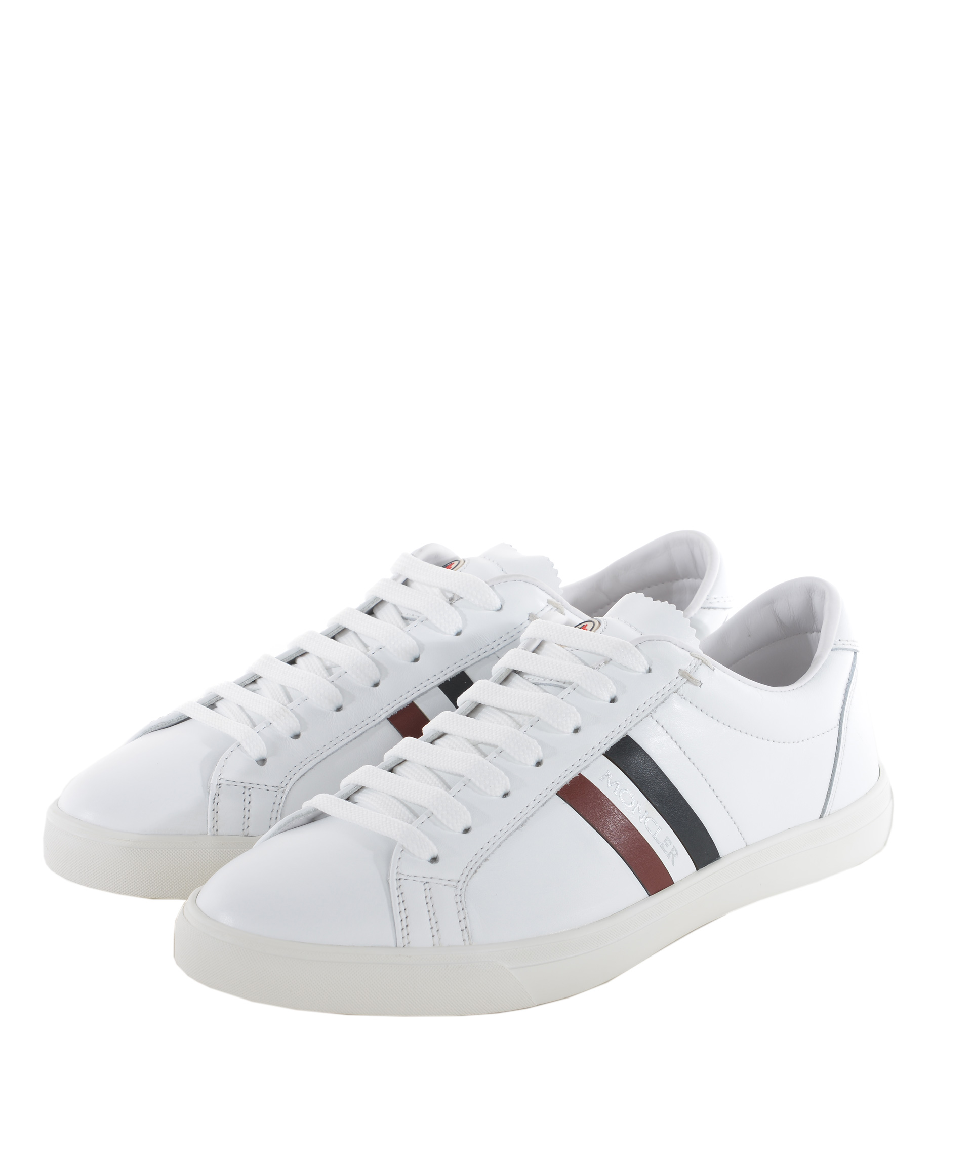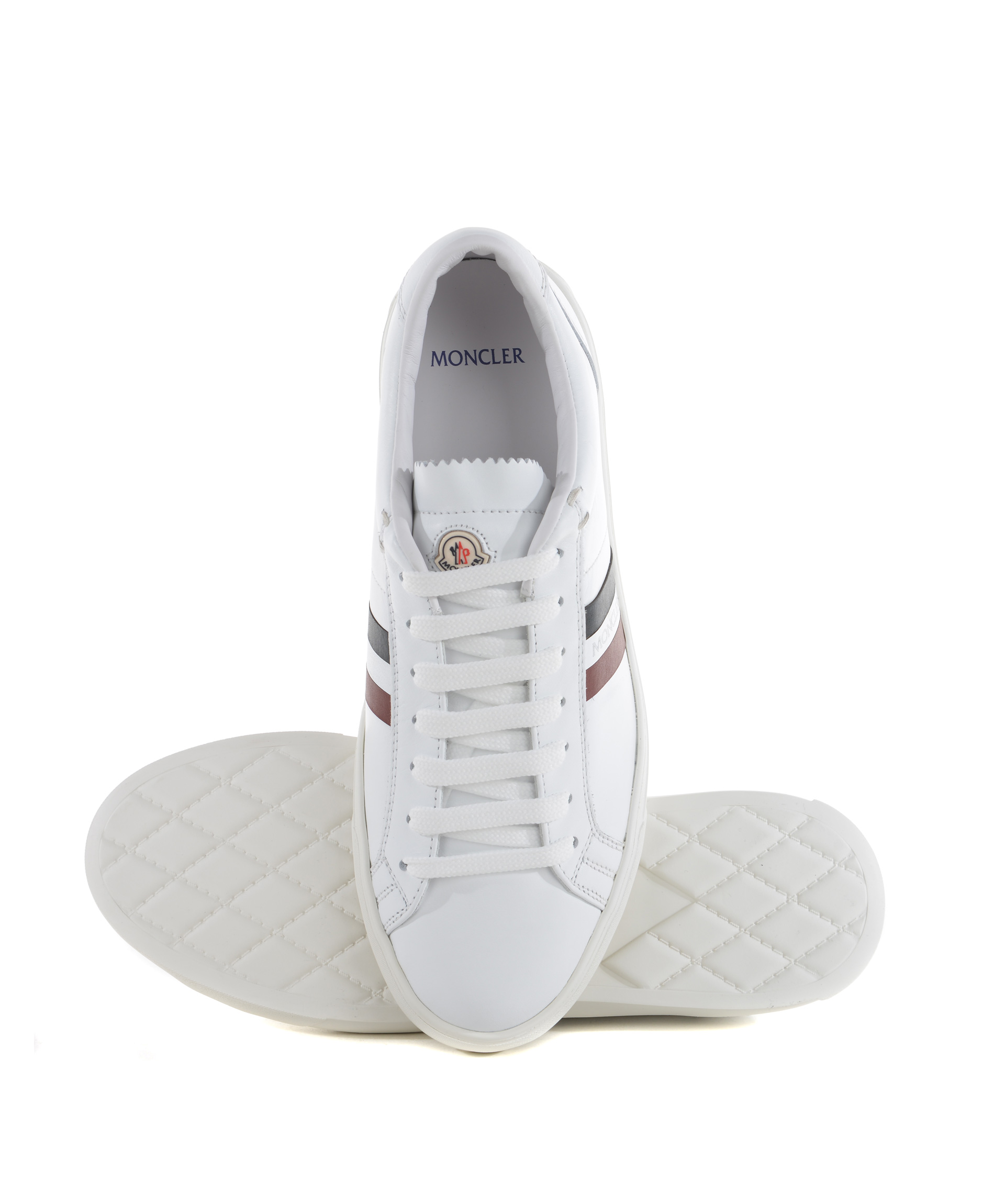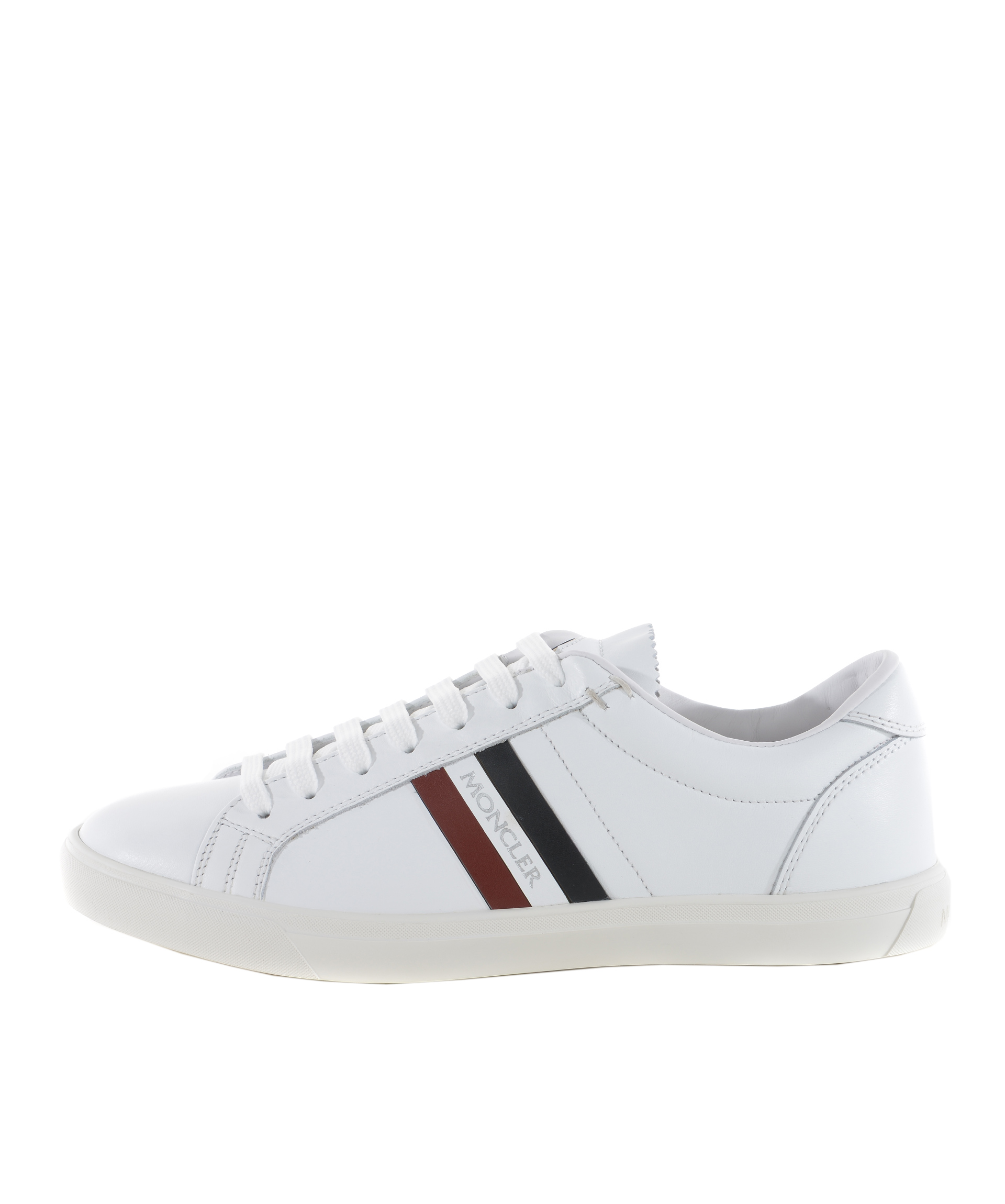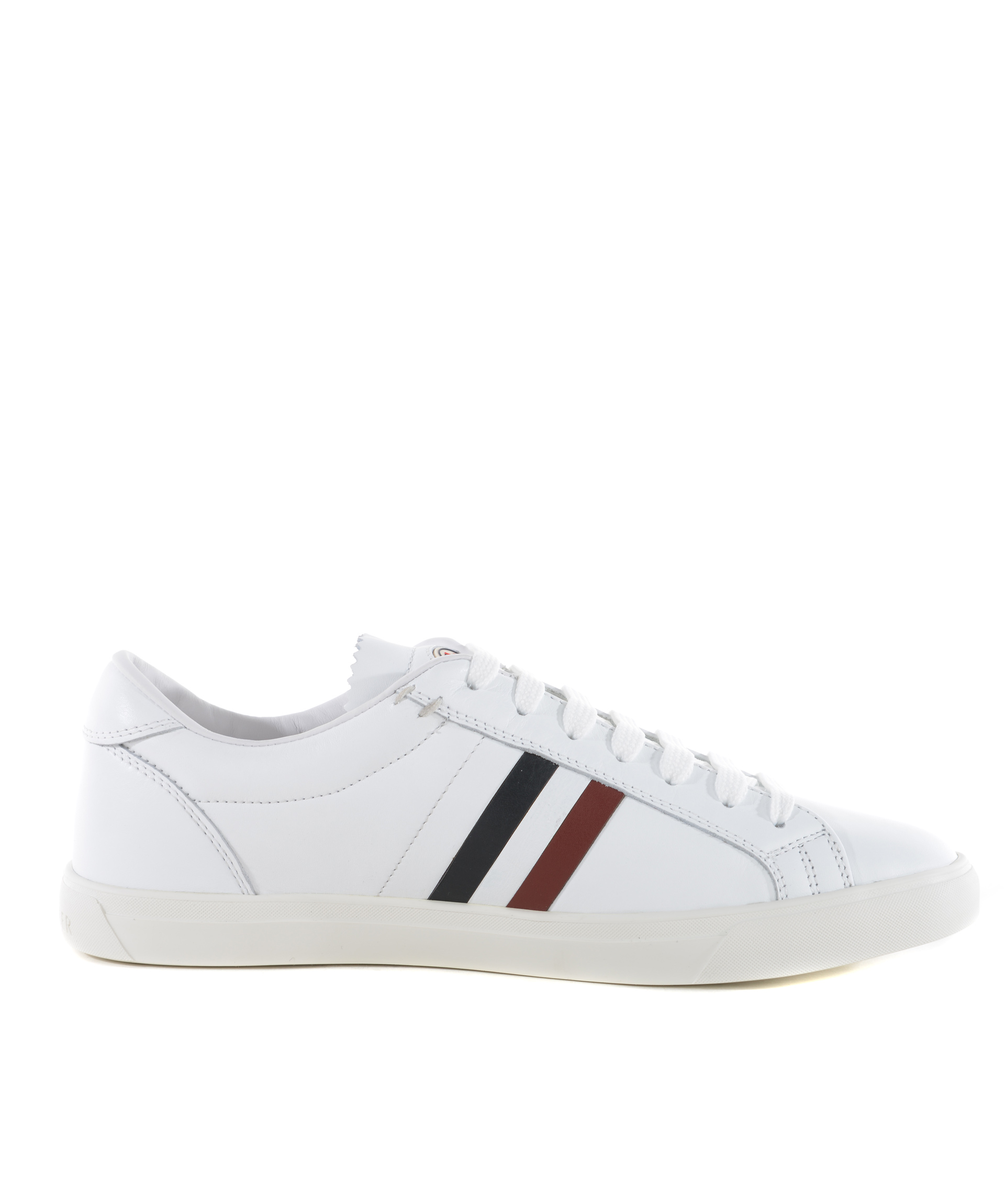 Sneakers Moncler in pelle Bianca. Logo lettering laterale. Stringate. Logo in gomma sulla linguetta. Suola in gomma. Misura in foto 40