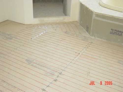 -. Feature : 50 Square Foot Under Tile Heating "Cable Set" (spool of wire), 120 Volts / Highest Quality Heating Cable, Twisted Pair for Zero EMF, Single Cold Lead, Very Thin, 1/8" thk / Wire is laid out 3" apart acroos the area to heat. Allows easy heating of odd shapes / Includes Honeywell/Aube Digital Floor Sensing Thermostat with Floor Sensor Wire(model TH115-AF-120S) / Includes Aluminum tape to secure wire to floor. UL LISTED for USA and Canada.