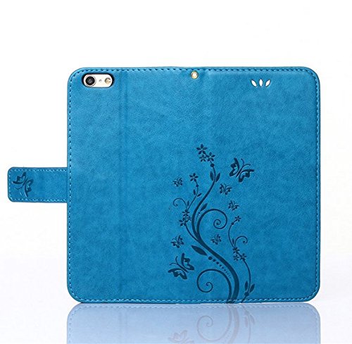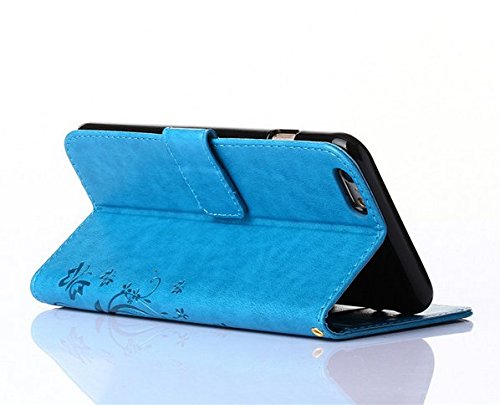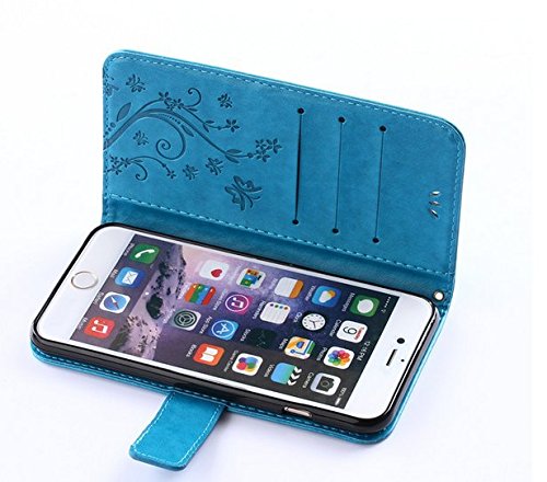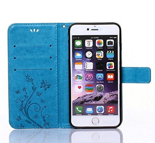 Auroralove iPhone 5/5s/se Luxury Handmade Bling Rhinestone Soft Slim Flip Stand Wallet Case for iPhone 5/5s/se Flower Butterfly PU Leather Case for Girls Women-Blue