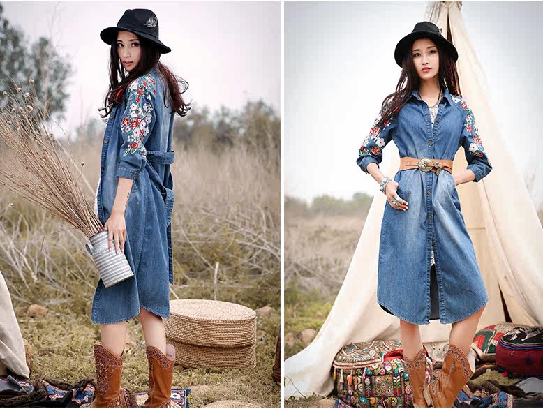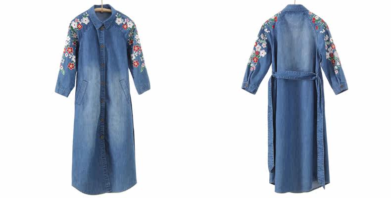 材質:ポリエステルコットン材、デニム付属品:ベルト付きませんサイズ:S:着丈102 バスト94 袖丈54M:着丈103 バスト98 袖丈55L:着丈104 バスト102 袖丈56XL:着丈105 バスト106 袖丈57