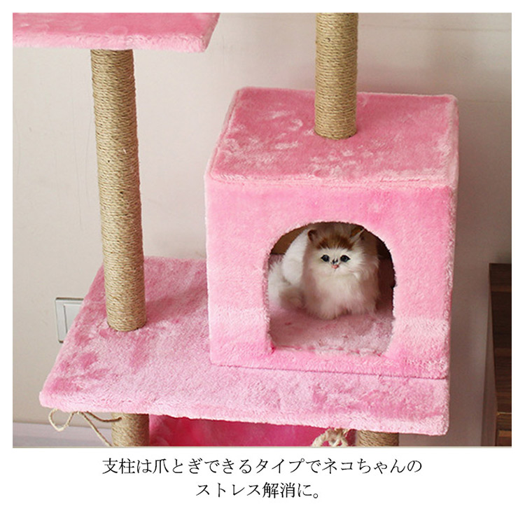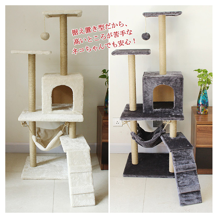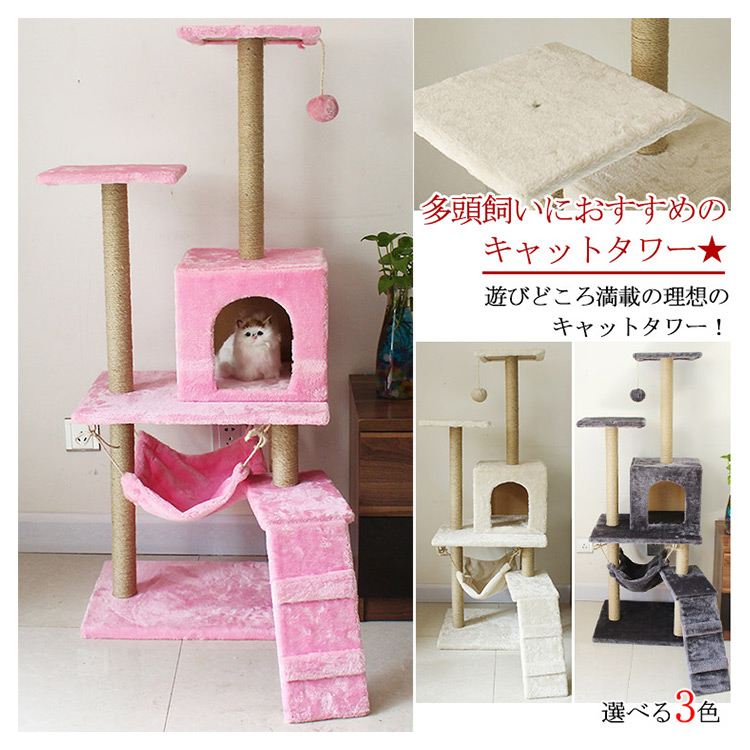 | 多頭飼いにおすすめのキャットタワー★遊びどころ満載の理想のキャットタワー!ネコちゃん大満足♪表面はふんわりいい手触り♪支柱は爪とぎできるタイプでネコちゃんのストレス解消に。据え置き型だから、高いところが苦手なネコちゃんでも安心! | |