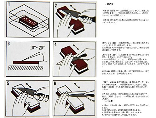 물건의 설명: 사용법 숫돌을 충분(약5분정도(쯤))에 수에 담그고 나서 심부름꾼 주십시오.칼날의 각도 에 따라(방법/겨냥)가망,누르는 시와 끌 때의 각도를 바꾸고 없는 나오 ## 것이 능숙에 ## 비결입니다.칼의 종류 양날칼 문화(3덕)부엌칼 식칼,우인등 한 쪽 날의 칼 식칼,박인부엌칼,생선회 부엌칼 부엌칼을 닦을 때,양날칼의 부엌칼은 표(든 때 바깥쪽이 되는 면)고, 뒤동 횟수 닦아 하십시오.한 쪽 날의 칼의 부엌칼은 표면(든 때 바깥쪽이 되는 면)를 주로 갈아 하십시오.숫돌에는 400,#1000,#4000라고던 바와 같은 숫자가 표기되어 있습니다. ,.숫자가 작은 분(쪽,편)가 까칠까칠 하고 있습니다. 즉,숫자가 작다#220은보다(부터) 연삭힘이 높게 잘 갈 수 있지만 칼끝도 까칠까칠 합니다.반대로 숫자가 크다#3000은 연삭힘은 낮지만 칼끝이《슷》와 직선적이 되어 칼이 드는 정도가 나아집니다.(칼 따위를) 갊 올랐을 때 칼끝의 뒤편에 생긴 카《에》#서는 부엌칼을 뒤집어 숫돌에 맞혀2~3회 가볍게 갈아 카《에》#을 구해 하십시오.주의 평탄한 상태를 유지하는 때문에,숫돌의 표면 전체에 칼을 갈아 주십시오.낙하 방지 이기 때문에,갈 때는 숫돌을 고정합니다.연마유를 사용하면 잘 가는 것 를 할 수 있습니다.아이의 손이 닿지 않은 곳에 두어 주십시오.