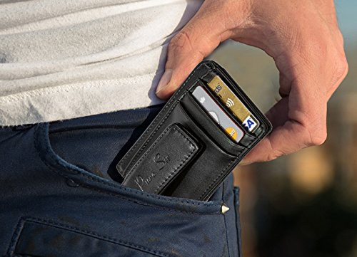 -. Feature : SLIM, STYLISH, GENUINE LEATHER: You can now effortlessly carry your credit cards, cash and ID with this superior quality, RFID blocking genuine leather slim wallet! Its sleek design makes it the quintessential travel wallet for every man. / PREVENT PERSONAL DATA THEFT WITH RFID BLOCK: RFID blocking technology keeps you safe from malicious identity and banking information theft. Lucky for you, our slim wallet and money clip comes equipped with the latest RFID blocking technology. Keep thieves from accessing your RFID-tagged cards and stealing your personal information! Be at ease knowing that your most important and personal information stays with you only. / AMPLE STORAGE IN A COMPACT WALLET: How can something so little come with so much space? Your genuine leather slim credit card holder comes equipped with an ID window for easy identification, money clip to store your bills with ease, 3 credit card slots, and 2 inner pouches to store up to 10 cards or cash. / EVERY MAN'S ESSENTIAL WALLET FOR ANY OCCASION: Pure Sir's high quality, genuine leather RFID blocking wallet is a chic addition to every gentleman's ensemble. Our minimalist wallet is perfect for a night out on the town, traveling around the world, or relaxing at a friends. / ENJOY A RISK-FREE PURCHASE: We take P.R.Ide in the quality of our RFID blocking genuine leather slim wallet and our top notch customer service. In the unlikely event you are dissatisfied with your purchase, within the first 90 days, we will provide a full refund of your money, no questions asked. To help you experience carefree travel, we also provide a 1-Year-Warranty on all our RFID wallets. Click Buy Now And Get The Best RFID Slim Wallet On Amazon!
