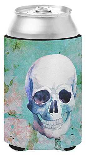 Caroline's Treasures Day of The Dead Teal Skull Can or Bottle Hugger, Can Hugger, Multicolor