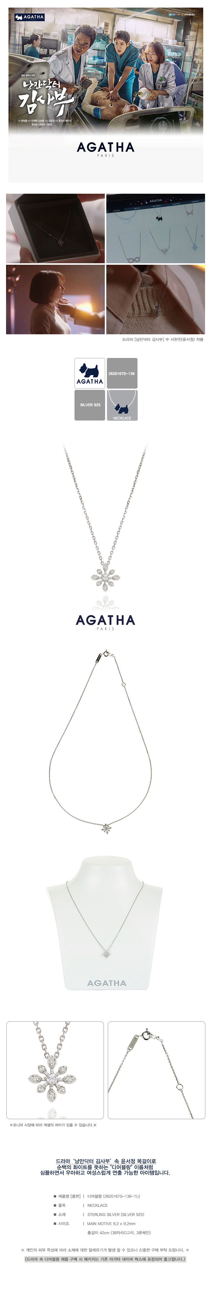 Agatha Necklace 2620167S-136-TU Korea Drama Romantic Dr. Doctor Park Shin Hye Seo HyeonJin's Jewelry