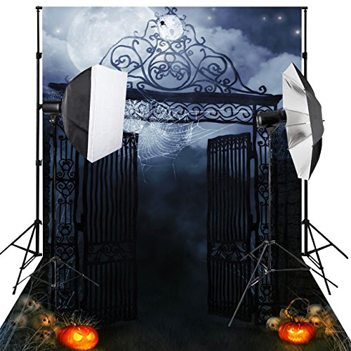 Kooer 6X9ft Halloween photography backdrops Night Spider web on Iron Gate Pumpkin Vinyl Fabric Photo Background for Studio