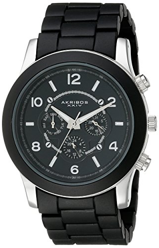 -. Binding : Watch -. Brand : Akribos XXIV -. Color : black -. Department : womens -. EAN : 0848572016193 -. Feature : Black dial with silver-tone, Arabic numeral and luminescent baton, hour markers and hands / Multifunction features include day, date and GMT (24 hour) sub dials / Silver-tone case with a black bezel; black link bracelet with an engraved clasp / Precise quartz movement / Water resistant to 99 feet (30 M): withstands rain and splashes of water, but not showering or submersion -. Label : Akribos XXIV -. Manufacturer : Akribos XXIV -. Model : AK583BK -. MPN : AK583BK -. PackageQuantity : 1 -. PartNumber : AK583BK -. ProductGroup : Watch -. ProductTypeName : WATCH -. Publisher : Akribos XXIV -. ReleaseDate : 2013-07-24 -. Studio : Akribos XXIV -. Title : Akribos XXIV Women's AK583BK Ultimate Quartz Multi-Function Bracelet Watch -. UPC : 848572016193