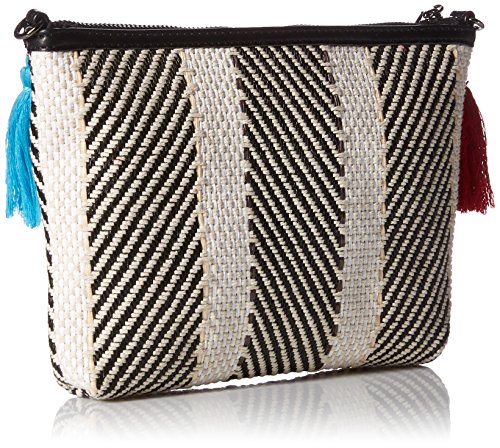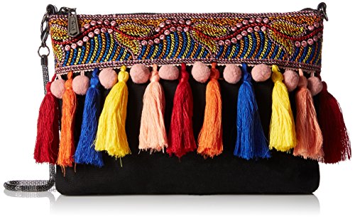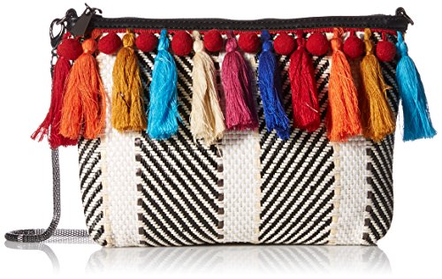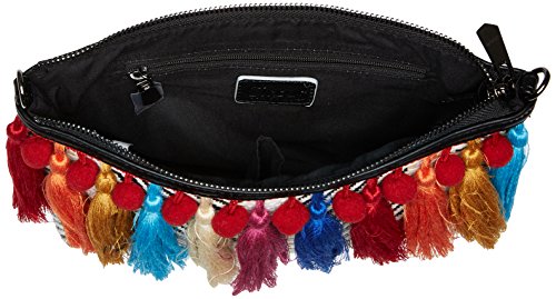 Pouch-style cross-body with multi-color pom-pom and tassel trim