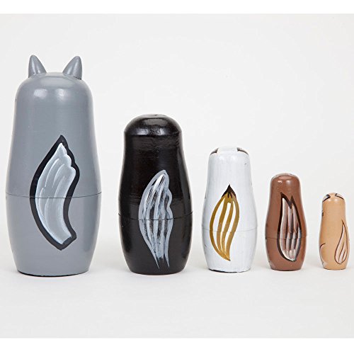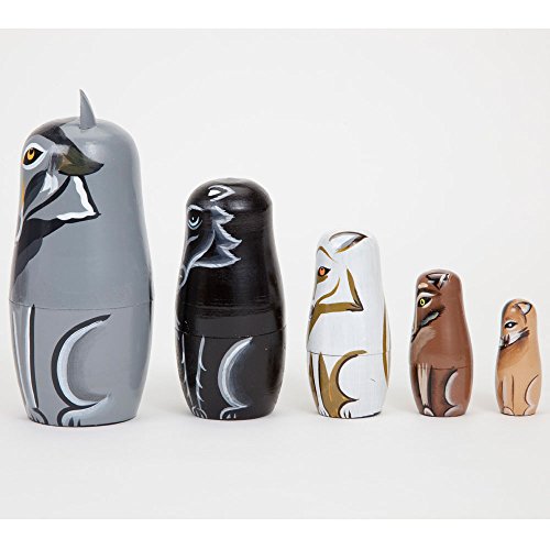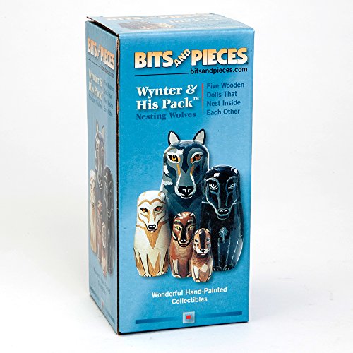 -. Binding : Toy -. Brand : Bits and Pieces -. EAN : 8139740432764 -. Feature : Wynter & His Friends is a set of wooden nesting dolls, also known as Russian dolls or Matryoshka dolls. / The wooden dolls, designed to look like wolves, each decrease in size and fit inside one another. / There are five wolf dolls in this set. / Makes a great for animal lovers and fans of arts and crafts. / The tallest of these nested dolls measures 6". -. IsAdultProduct : 0 -. Label : Melville Direct -. Manufacturer : Melville Direct -. MPN : 43276 -. PackageQuantity : 1 -. PartNumber : 43276 -. ProductGroup : Toy -. ProductTypeName : TOYS_AND_GAMES -. Publisher : Melville Direct -. Studio : Melville Direct -. Title : Bits and Pieces - "Wynter & His Pack" Wolf Pack - Matryoshka Dolls - Wooden Russian Nesting Dolls - Wolf - Animal Figurines - Stacking Doll Set of 5