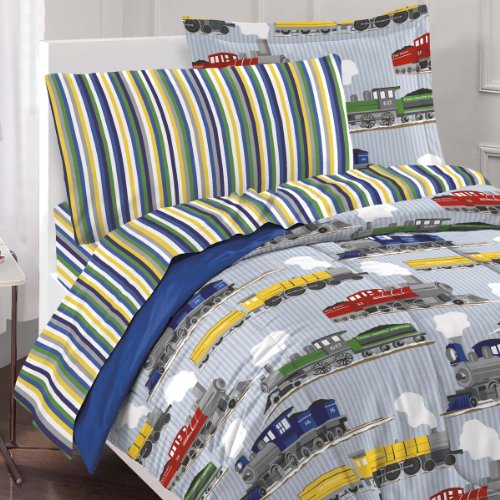 Dream Factory Trains Ultra Soft Microfiber Boys Comforter Set, Blue, Full