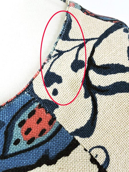 Ladies ブランド- カラー生成り・青・赤 メール便不可 コンディション★★★ 素材- 表記サイズ- スタッフコメント首回り、袖口、右アームホール、全体にスレダメージあり。タグ無し(ハンドメイドのような作りです)。裏地脇パイピングダメージあり。 実寸サイズ 着丈 101 cm 身幅 46 cm 袖丈 39 cm ラグラン袖の為、襟元から袖先までの計測 ※ウエスト・ヒップ以外は平置き採寸