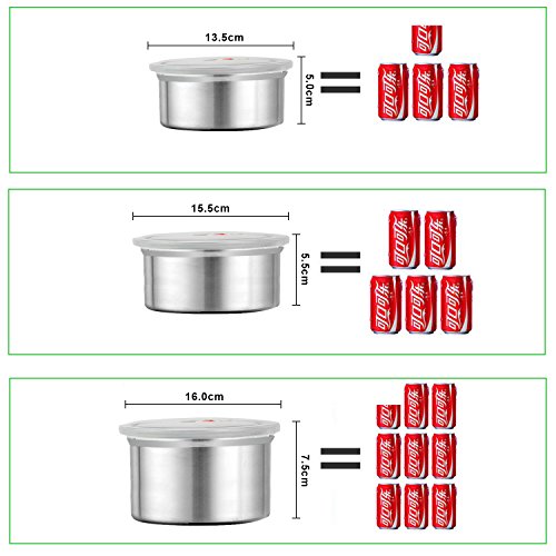 - 【3 Different Sizes】 The 3 set container has 3 different sizes. The diameter for the large one is 18cm, medium is 15.3cm, and small is 13.4cm.