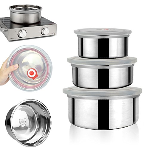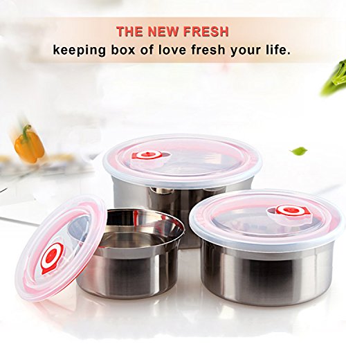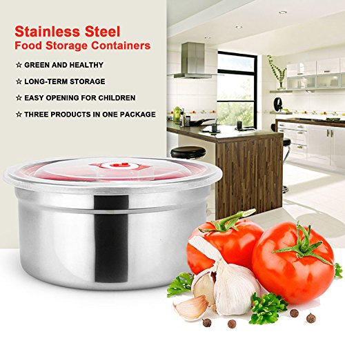 IEBIYO Pack of 3 Food Storage Containers w/ Leak Resistant Lids, Stainless Steel Rustproof Bento Box, Lightweight Recyclable Round Containers, 3 Sizes for Sandwiches Cut Veggies Nuts Berries Cookies