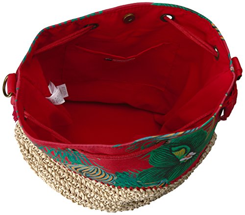 Novelty fabric shoulder bag with adjustable shoulder strap.