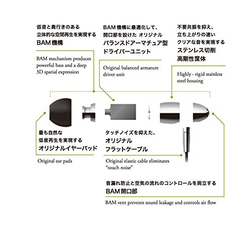 -. Feature : Handmade earphone / Custom-made Balanced Armature driver / BAM mechanism produces powerful bass and a deep 3D spatial expression / Highly rigid stainless steel housing / Two Year Warranty
