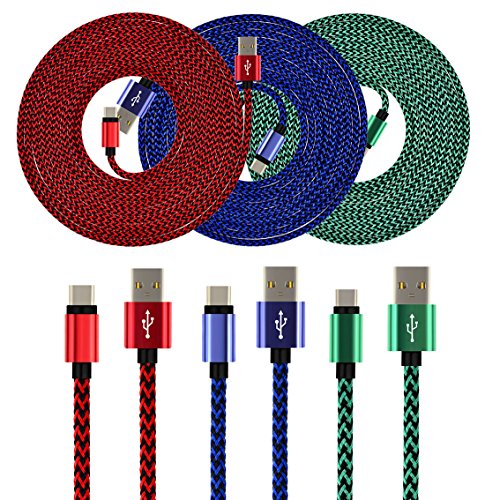 UNISAME [Pack of 3Pcs] 10Ft Rugged Bold Braided USB Type-C 3.1 to USB 2.0 A Data Charging Cable Reversible Connector Charger Cord for Moto Z Force, LG G5, Nexus 6P 5X, HTC 10, Oneplus 2 3 and More