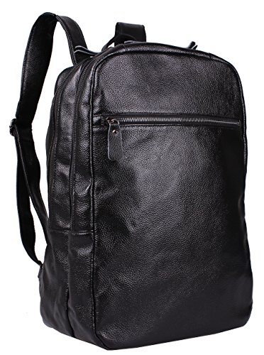 -. Feature : The black backpack is made of very good quality genuine leather. The leather is soft to the touch. / The large men's genuine leather backpack is 17"L x 7.5" W x 13"H inches. / This leather college shoulder backpack has two main compartments,the laptop compartment is 14''H x 10''L. / Backpack straps be able to adjusted length freely, including an extra adjustable long strap, this purse may do uses: laptop backpack, school bookbag, tote handbag,travel bag. / The casual travel daypack is also a good size to hold files, books, laptop,etc so you can use it for college, university, work, shopping, weekend breaks.