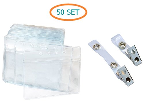 - Box package included 50pcs*Clear Plastic Horizontal Name Tag Badge ID Card Holders and 50pcs*Metal Badge Holder Clips