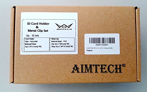 Aimtech™ Set of 50 Pcs Clear Plastic Horizontal Name Tag Badge Id Card Holders & Metal Id Badge Holder Clips with PVC Straps (Aimt1526)