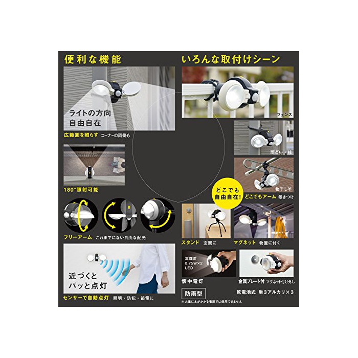 원본상품명: ムサシ どこでもセンサライトダブル(乾電池式) 防雨型 ASL-092