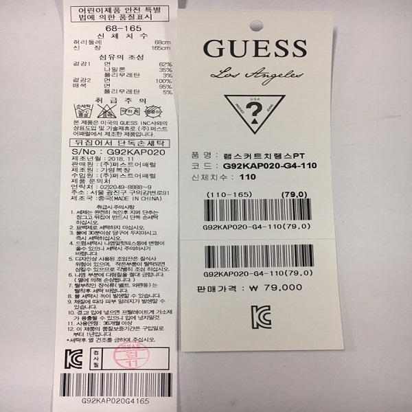 제품소재 : 면62%나일론35%폴리우레탄3%