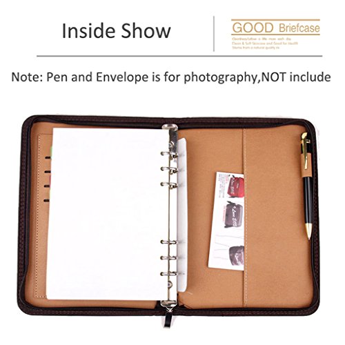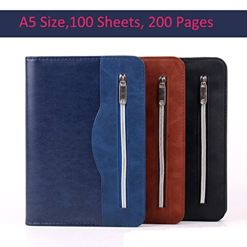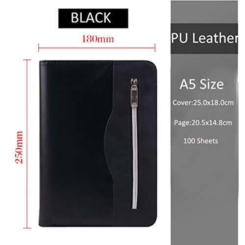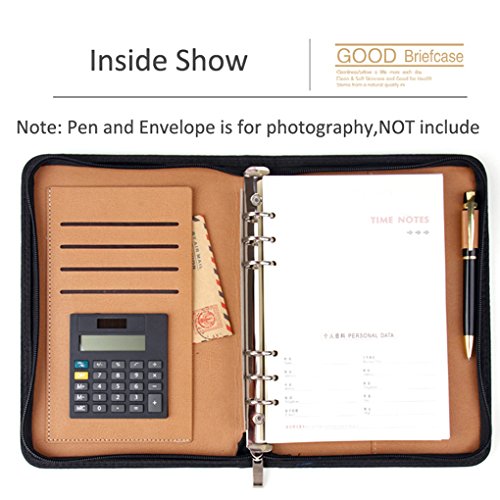 SAYEEC Ringbinder Folio with Zipper A5 Lined Paper Zip Around PU Leather Loose Leaf Business Notebook Portfolio Executive Conference Folder Travel Portfolio Zipped Organiser with Calculator Black