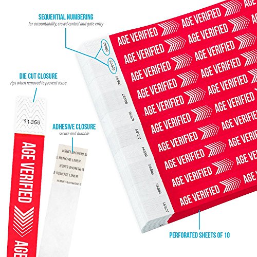 -. Title : Red Age Verified - Wristco 3/4" Tyvek Wristbands - 500 Ct.