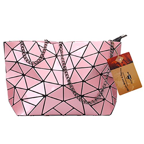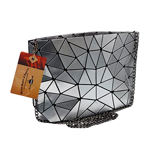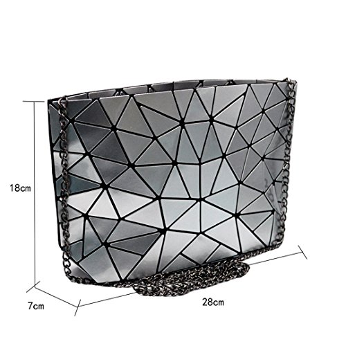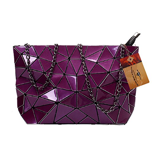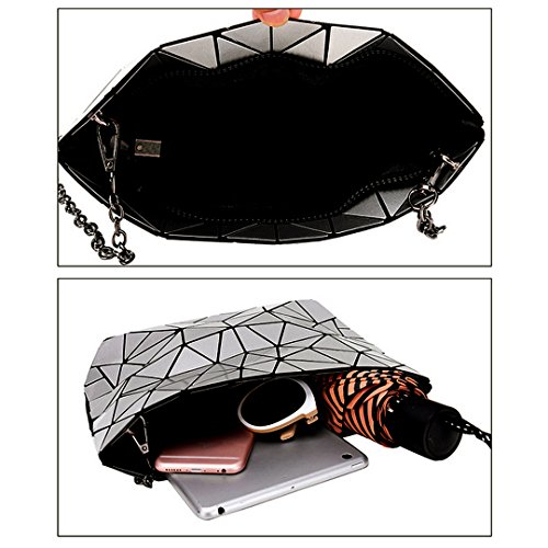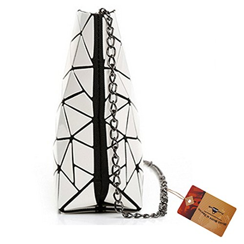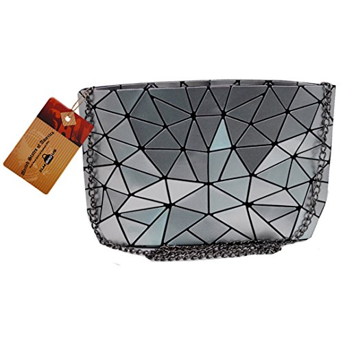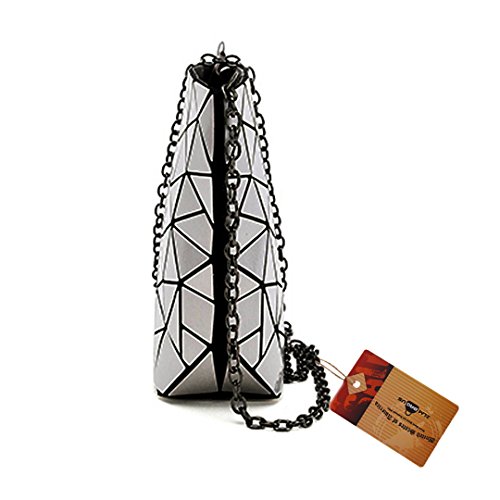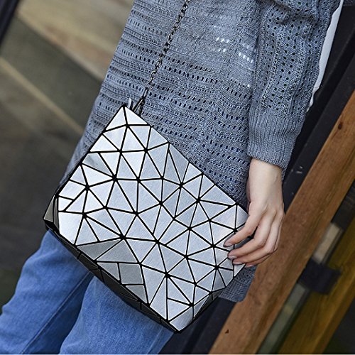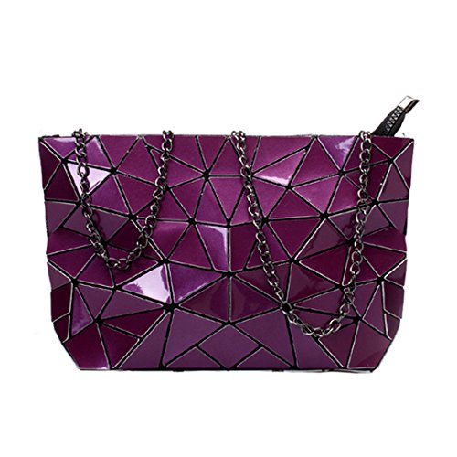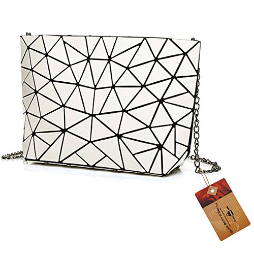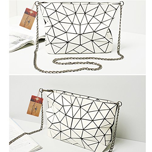 Made of good quality PU leather and wear resistance polyester lining, durable and sturdy. Unique geometric patter design, chic and fashionable, never go out of style. The compact size, lightweight and portable, perfect to use when you don't want to carry a big bag. One main bag and inner pockets, capacious for your cell phone, sunglasses, makeup case, foldable umbrella, etc. Convenient zipper closure, detachable chain strap, an excellent choice for dating, shopping, travelling, commute, parties as a tote handbag, a clutch purse, a shoulder bag or crossbody bag.