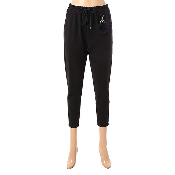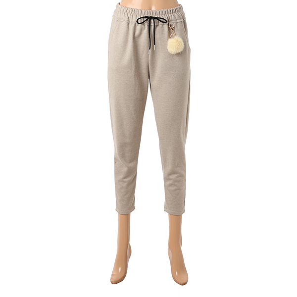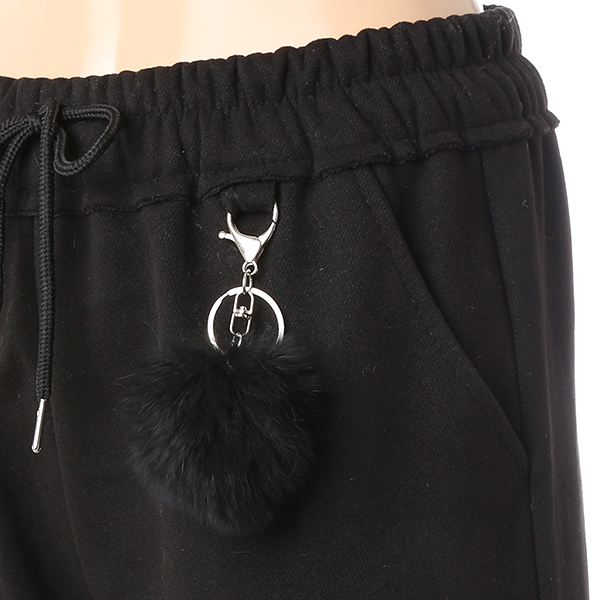기모가 들어 있어 따뜻하며 폼폼이 세트 상품인 슬림형 팬츠입니다.