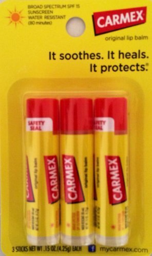 -. Title : Carmex Broad Spectrum SPF 15 Water Resistant Sun Screen .15 OZ (3 pack of 3 sticks, 9 sticks total)
