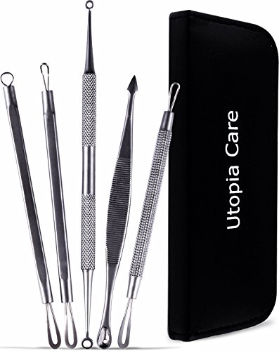 Professional Blackhead Blemish Remover Kit - Pimple Comedone Removal 5-In-1 Extractor Tool Kit with Zit Popper - by Utopia Care