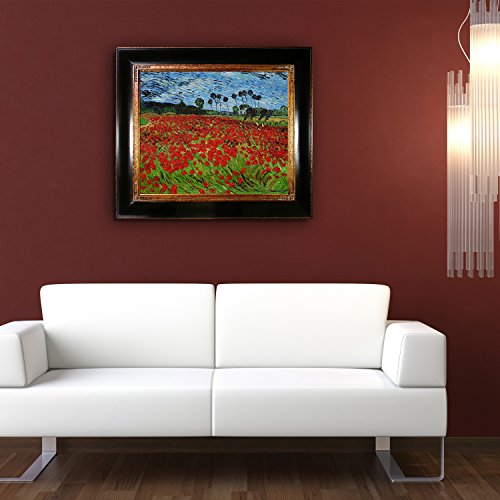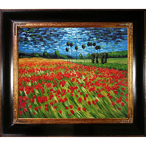 20-inch by 24-inch oil painting on canvashand painted oil reproduction of one of the most famous van gogh paintings, field of poppies. The original masterpiece was created in 1889. Today it has been carefully recreated detail-by-detail, color-by-color to near perfection. Why settle for a print when you can add sophistication to your rooms with a beautiful fine gallery reproduction oil painting?vincent van gogh's restless spirit and depressive mental state fired his artistic work with great joy and, sadly, equally great despair. Known as a prolific post-impressionist, he produced many paintings that were heavily biographical. This work of art has the same emotions and beauty as the original by van gogh. Why not grace your home with this reproduced masterpiece? It is sure to bring many admirerspainting arrives framed in opulent; 4 1/2-inch espresso stained wood frame with gold liner. Exterior dimensions are 29-inch by 33-inchFeature