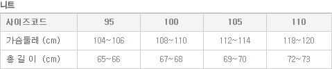 | 사이즈 조견표: