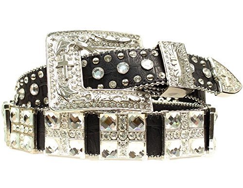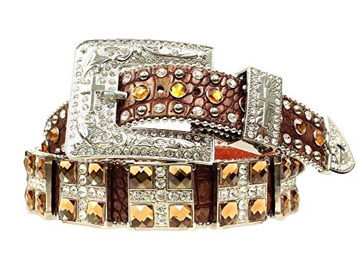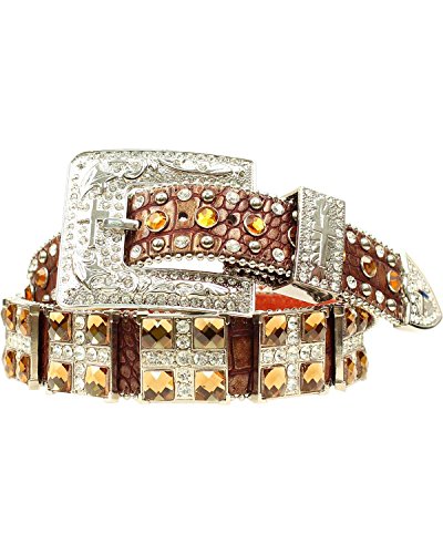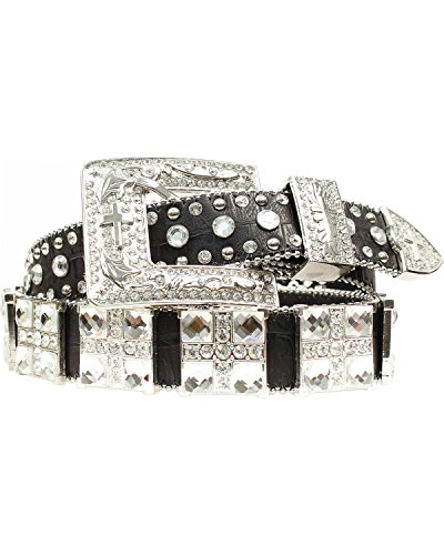 Studio : Blazin Roxx Publisher : Blazin Roxx Binding : Apparel Product Description Cowgirl, your style demands the spotlight, and with this belt by Blazin Roxx, you'll shine in it Made of rich, full-grain leather with an exotic croco gator print, this dazzling belt features large, sparkling square conchos with rhinestone crosses. Three-piece fancy hardware also boasts matching crosses, and shining silver-tone studs and crystal rhinestones adorn the edges. For lower waist rises, measure to fit your hips. Women's sizes S(30"), M(34"), L(38"), XL(42"), Plus (46"). Imported 0