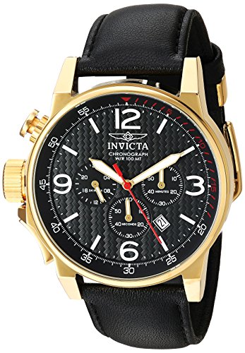 Enjoy any occasion with this bold Invicta I-Force for men with the comfortable genuine leather strap and 100M water resistance. The textured and detailed chronograph dial is covered by a polished stainless steel case and joined by luminous hands, making this timepiece a must-have for any collection.Feature