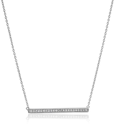 Sterling Silver Pave Cubic Zirconia Bar Pendant Necklace, 17.5"