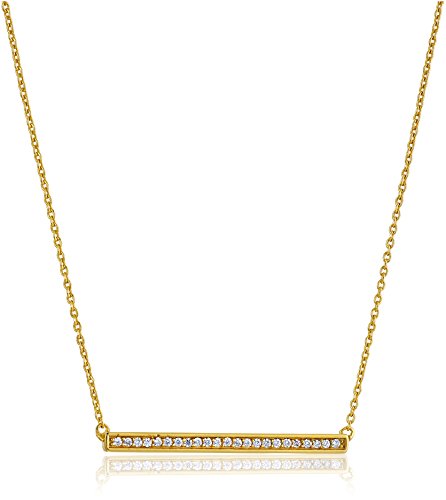 Gold Plated Sterling Silver Pave Cubic Zirconia Bar Pendant Necklace, 17.5"