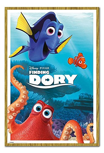 -. Title : Finding Dory Disney Pixar Characters Poster Magnetic Notice Board Oak Framed - 96.5 x 66 cms (Approx 38 x 26 inches)