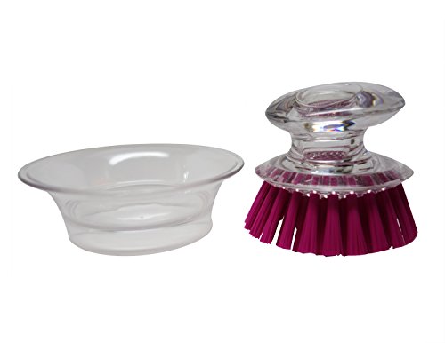 Casabaella Mini Scrub Brush With Holder, Pink, 3-Pack