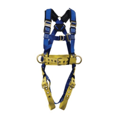 -. Feature : Four steel D-rings: at back, hips, and chest / Parachute mating buckle on chest strap / For fall arrest, positioning and ladder climbing / Made of polyester and nylon / Size: large