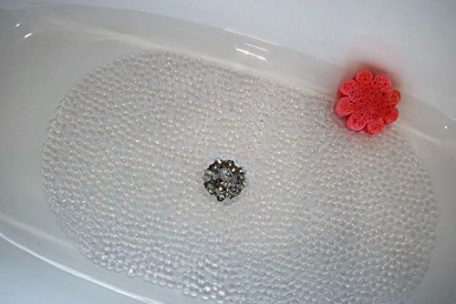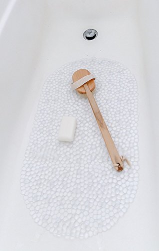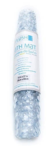Plush Home Non Slip Clear Pebble Bathroom Shower Mat, Skid Resistant Suction Cups, Machine Washable Mat Measures 15 Inches by 27 Inches (Clear)