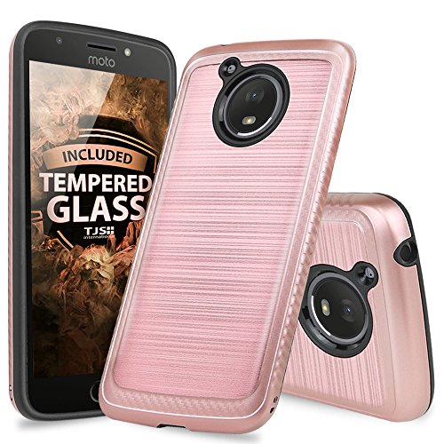 -. Title : Motorola Moto E4 Plus Case, With TJS [Full Coverage Tempered Glass Screen Protector] Dual Layer Hybrid Shock Absorption Case Carbon Fiber Metallic Brush Finish Back Hard TPU Inner Layer