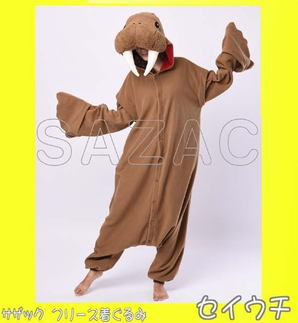 大きな牙とつぶらな瞳が可愛い「セイウチ」の着ぐるみです。あたたかいフリース素材で着心地もGOOD!!パジャマやお部屋着にもオススメです☆