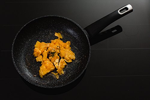 READY TO USE AND EASY TO CLEAN: Granit Evolution's micro honeycomb structure helps to retain the cooking oil better while distributing it more evenly over the entire surface of the pan. Equipped with an ergonomic handle, ELO's Granit Evolution frying pan is ready to be used on electric, gas, induction and glass ceramic stoves. Dishwasher safe.