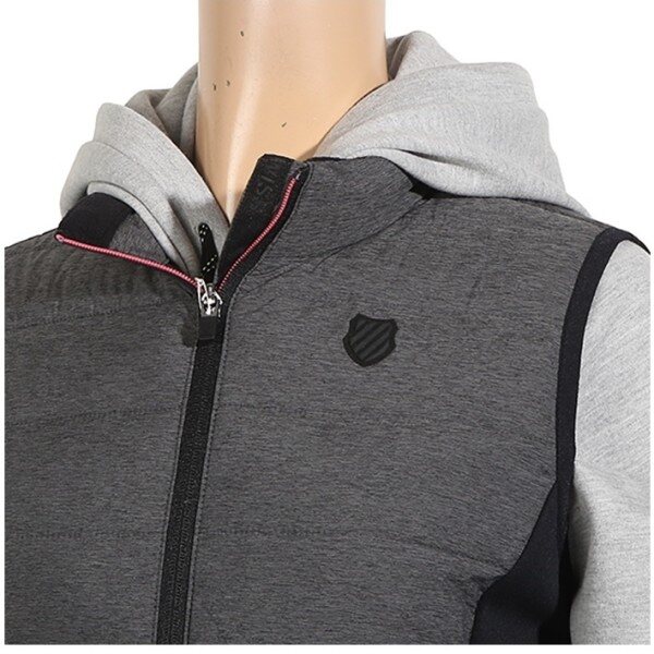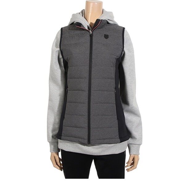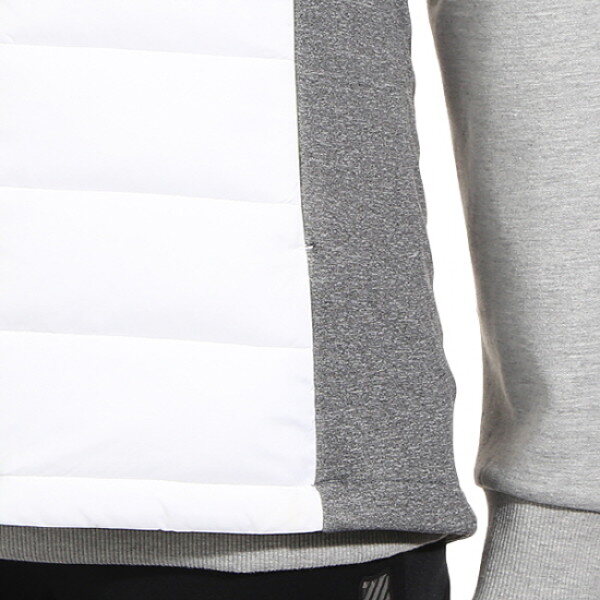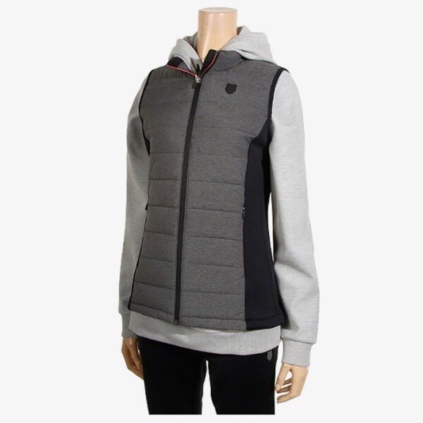폴리소재의 우븐과 저지원단이 믹스된 롱 베스트.보온성이 뛰어난 3D패딩을 사용하였고 사이바 쪽에 믹스되어 있어 착용시 편안하며 엉덩이를 살짝 덮는 길이로 부담없이 어느 옷에나 연출이 가능. 지퍼를 오픈했을 때 컬러 포인트가 보여짐