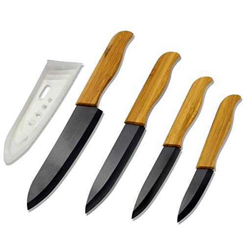 원본상품명: ZyF 8?Pieceブラックブレ?ドセラミックカトラリ?キッチンナイフ人間工?木製ハンドルとSheaths