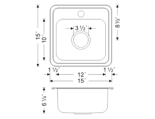 Wells Sinkware CMT1515-6 22 gauge Single Bowl Top-Mount Kitchen Sink, Stainless Steel