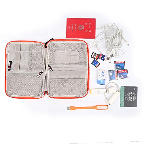 Easy access mesh pockets expand to store multiple sizes of USB drive, 2 zipper mesh pockets for 2.5 inch hard drive or portable power